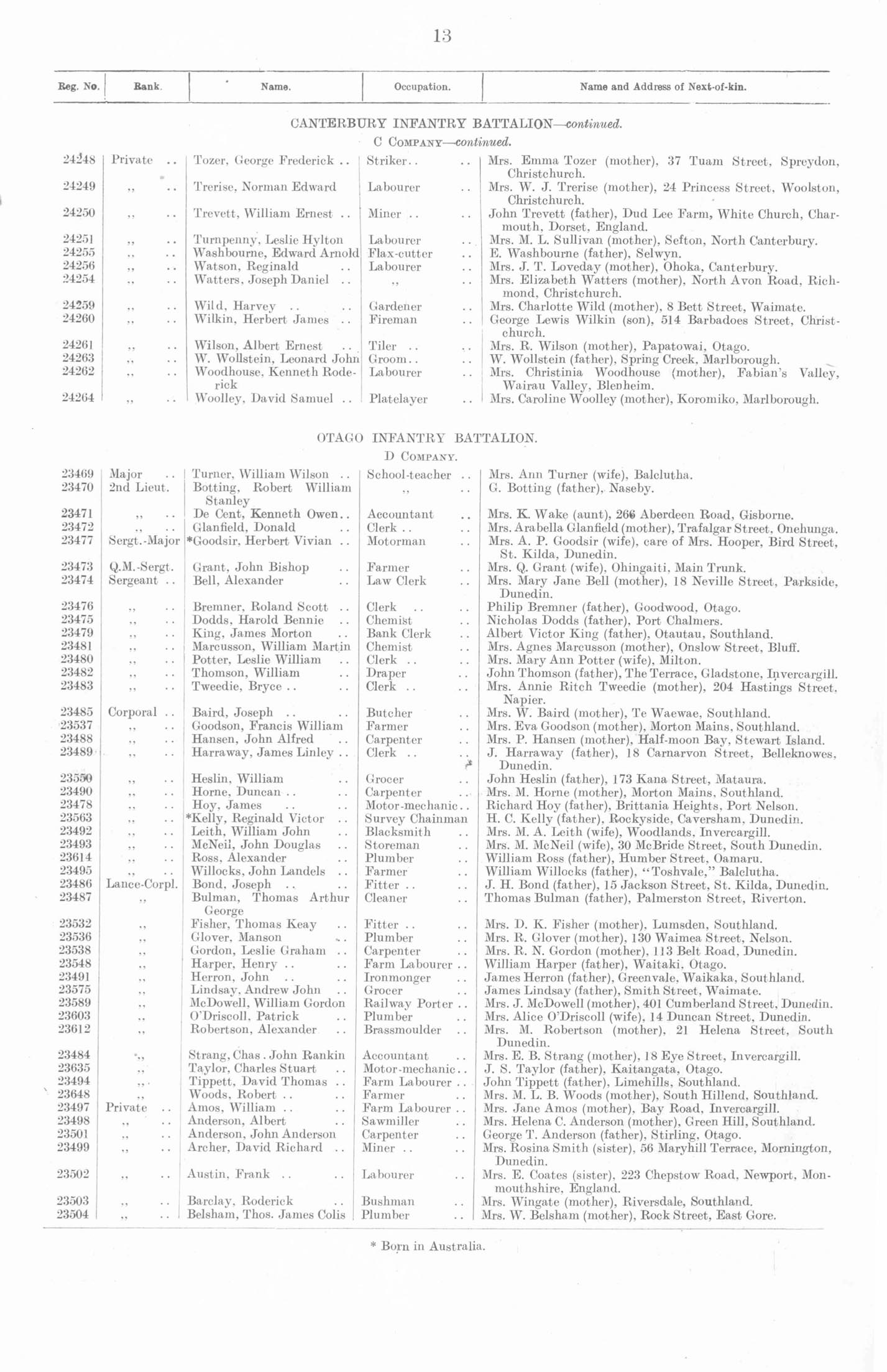 If you're referring to 24259 Harvey WILD of C Company, Canterbury Infantry Regiment, the Nominal Roll lists his next of kin as his mother, Charlotte WILD, of Waimate.