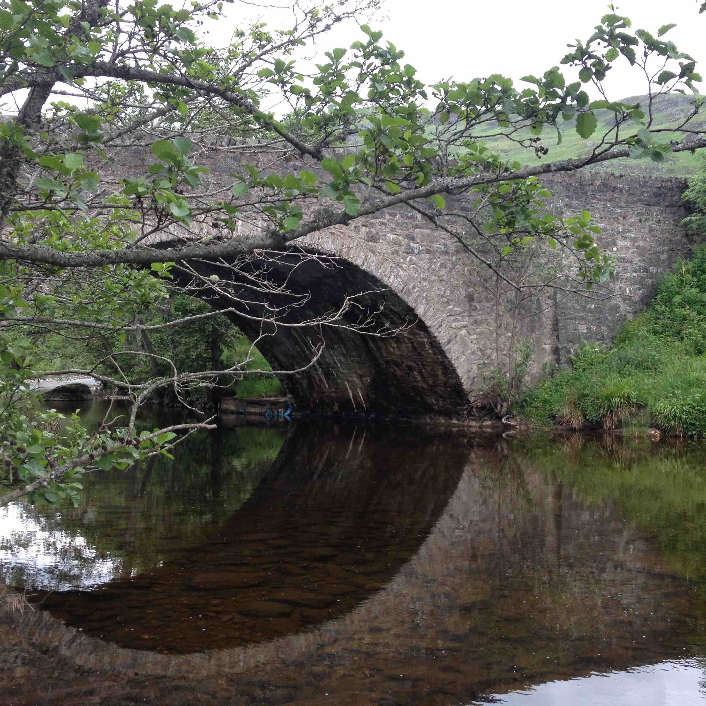 Another bridge with shallow river and very similar hill in the background. Newton Bridge, River Almond, Sma' Glen, Perthshire. This is a Wade Bridge. Lots built in very similar style in the Scottish Highlands.