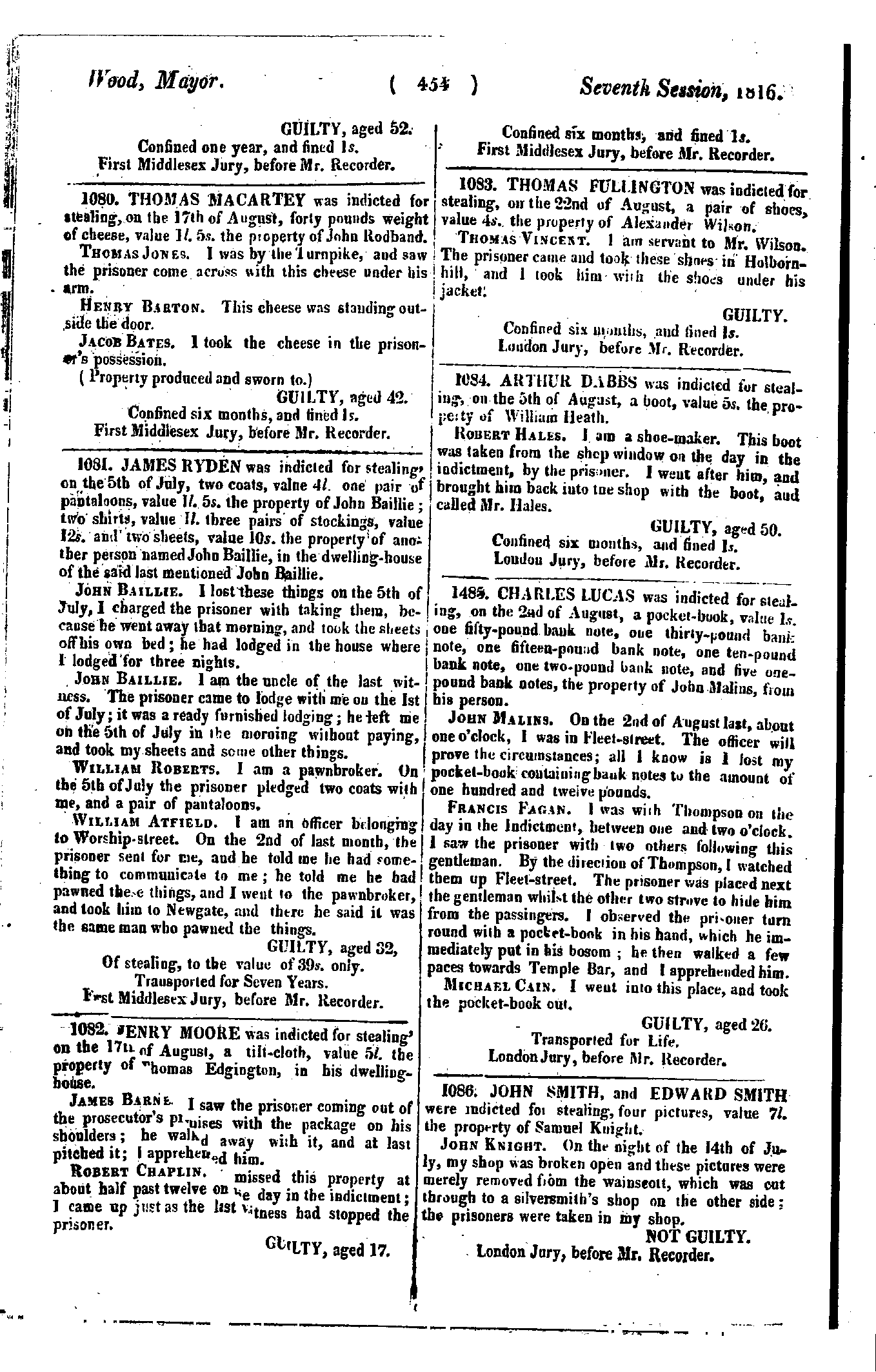 See newspaper snippets that appeared 26 and 29 Sep 1816 - relating to Old Bailey Sessions that began 18 Sep. Trial held Wed 25th.
